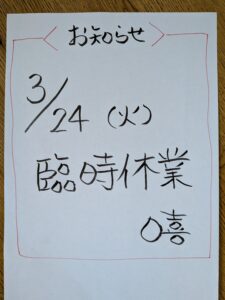 勝手ながら、1月24日(土)、25日(日)は臨時休業します。